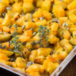 Roasting pumpkin needs to be at a higher temperature to get some lovely caramelization as it cooks quickly due to its high water content. Adding in some already roasted pumpkin seeds or pepitas at the very end as some lovely crunch to the sweet pumpkin.